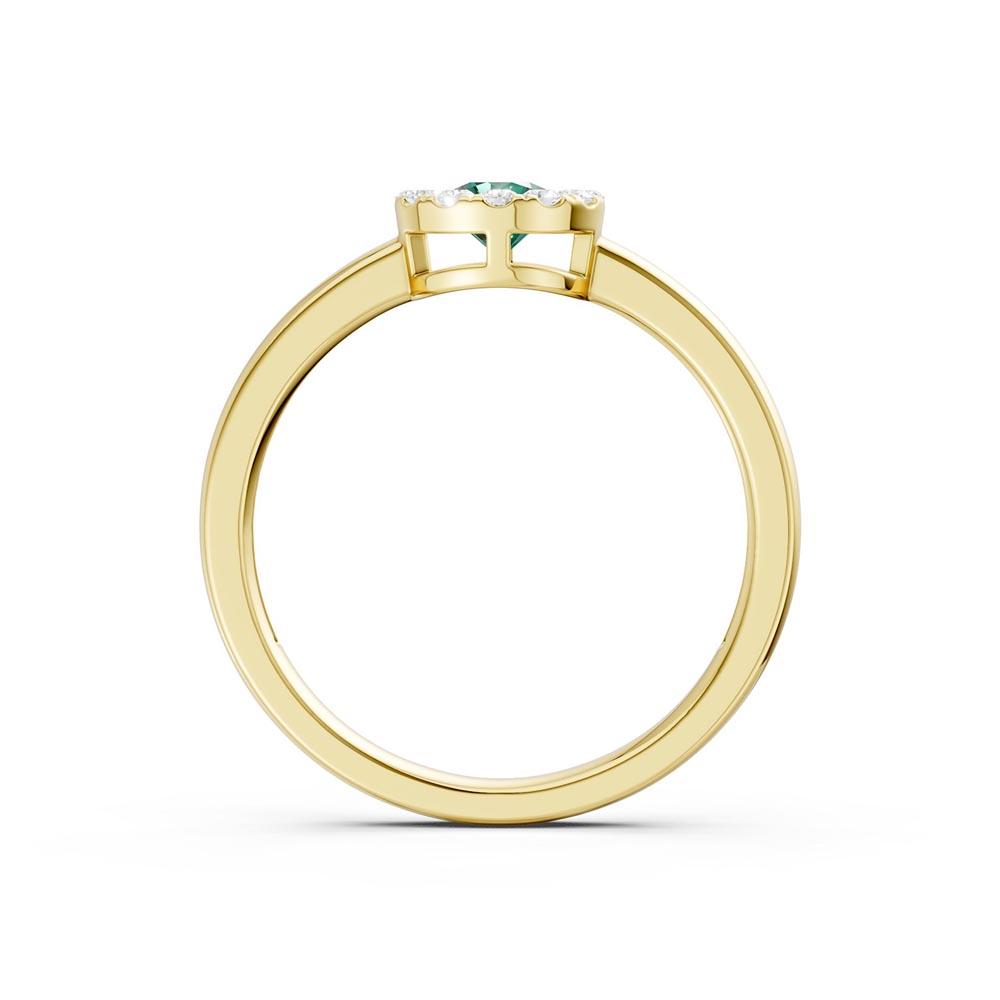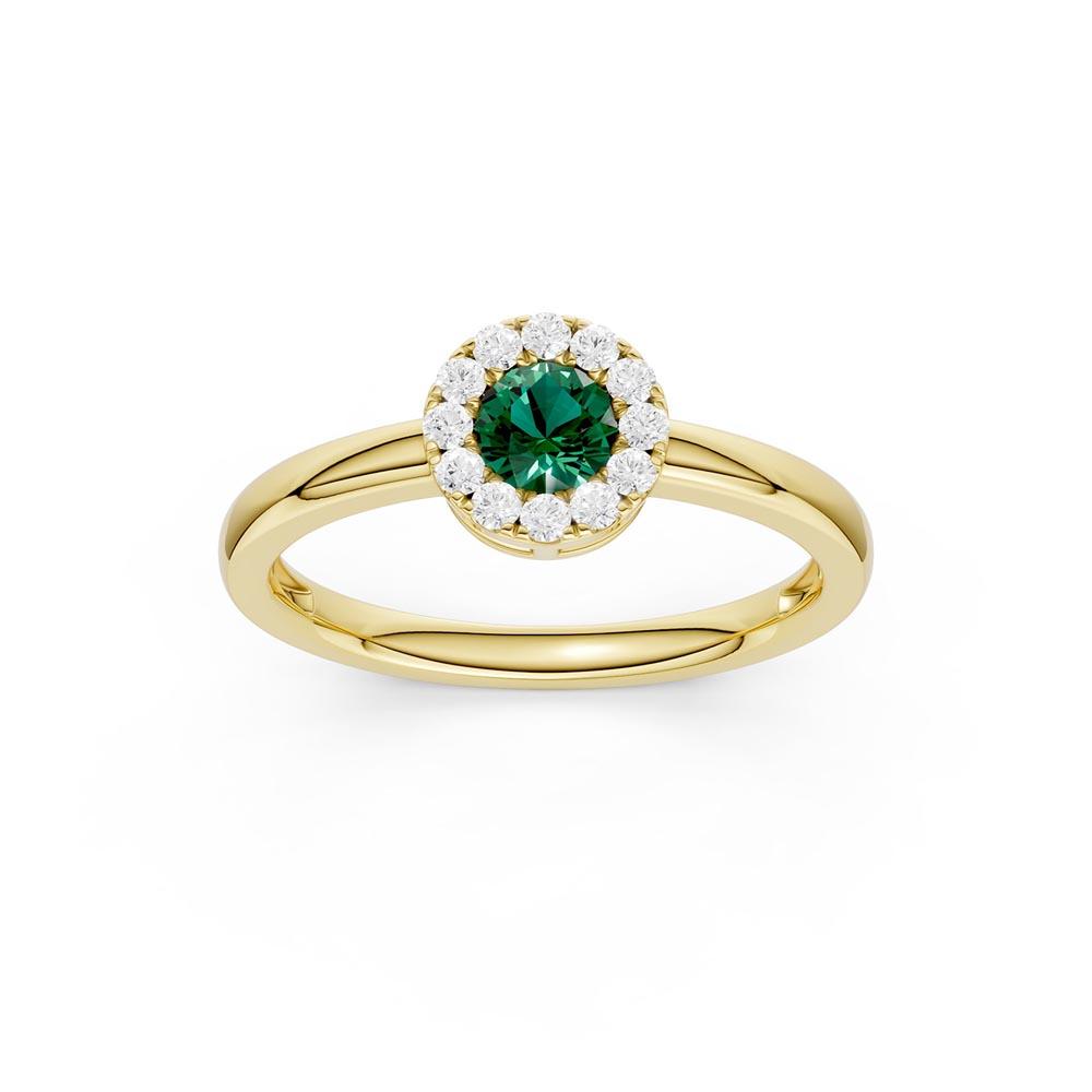 Rosettring i gultgull 14Karat (585). Grønnsmaragd med 0,10ct TWSI diamanter rundt.