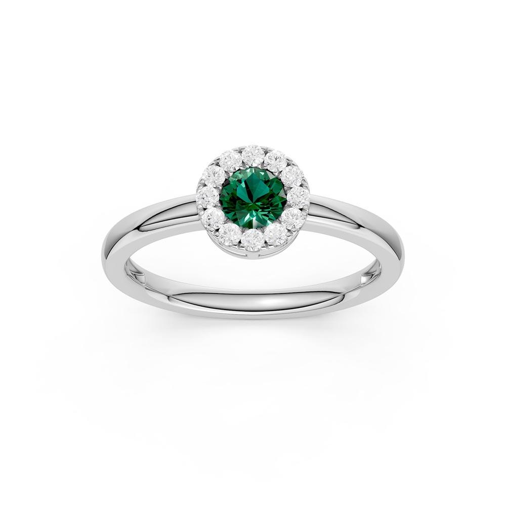 Rosettring i hvittgull 14Karat (585). Grønnsmaragd med 0,10ct TWSI diamanter rundt.