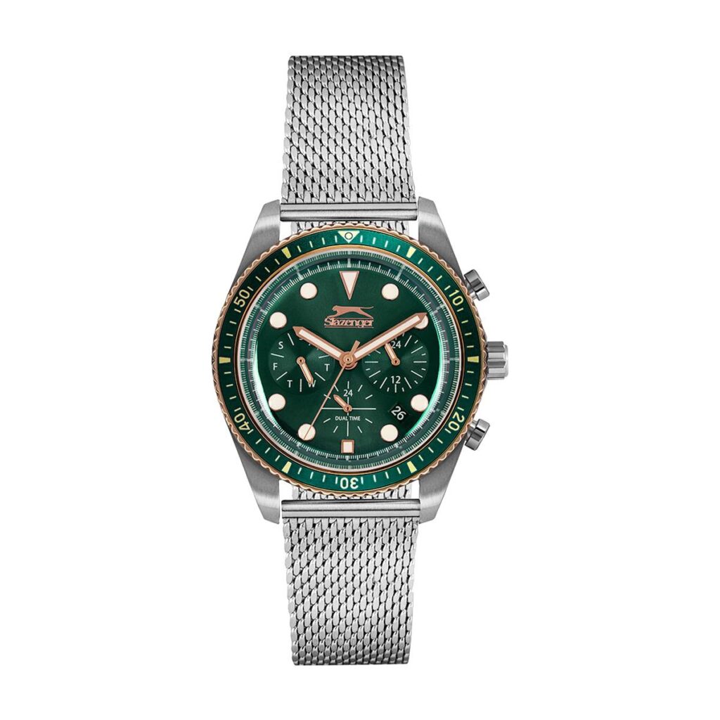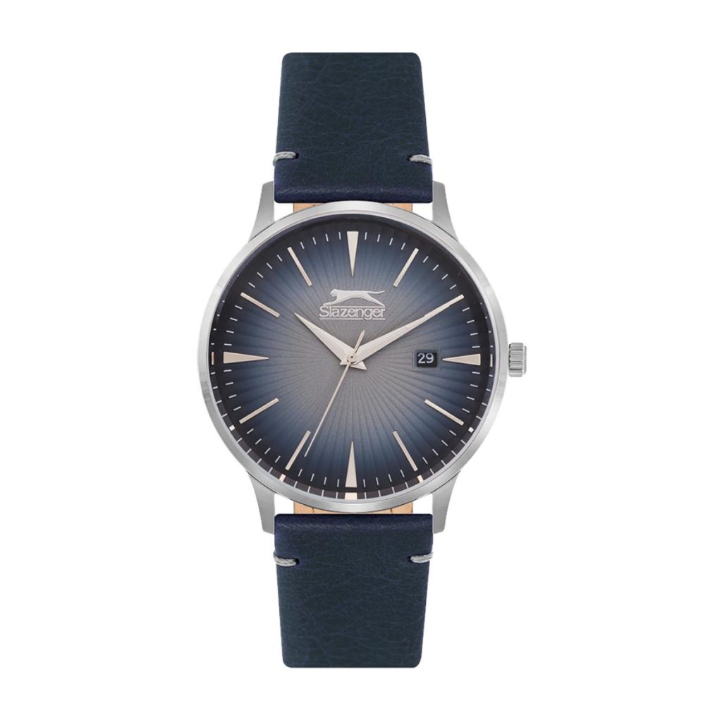 Herreklokke fra Slazenger med sølvfarget meshlenke i stål og blå urskive.