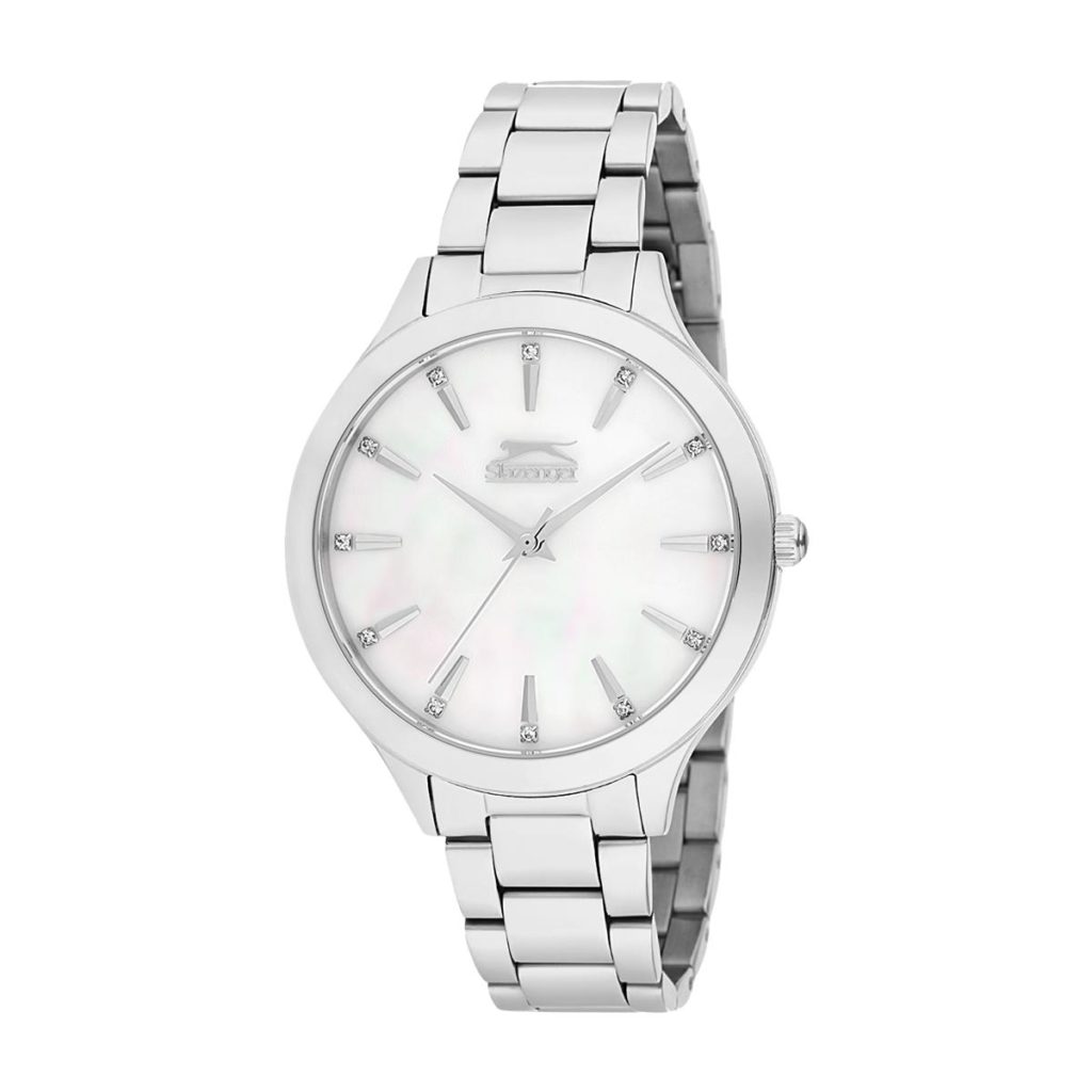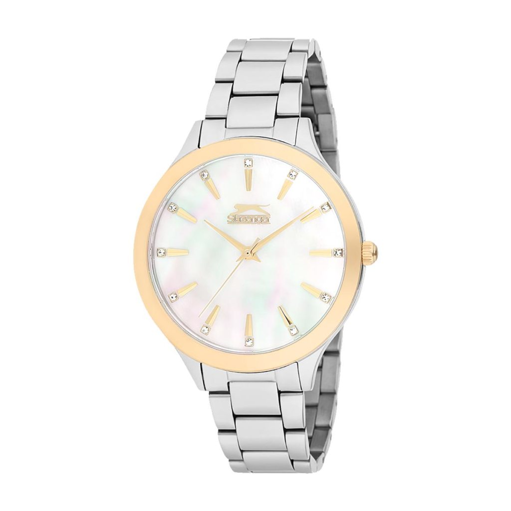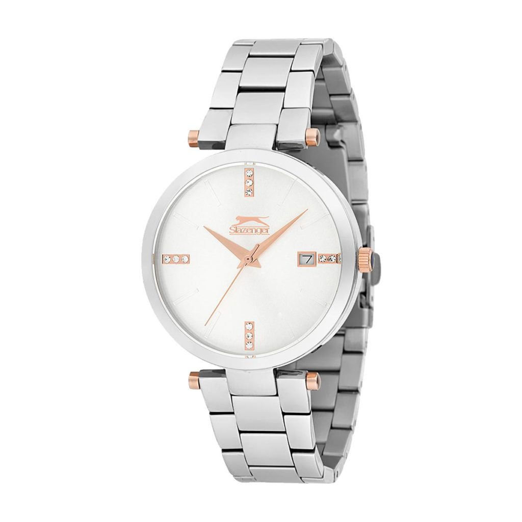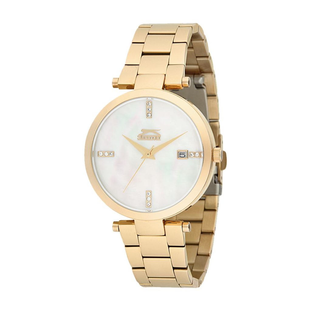 Lekkert dameur fra Slazenger med brun urskive og stener på urskiven og bezel.