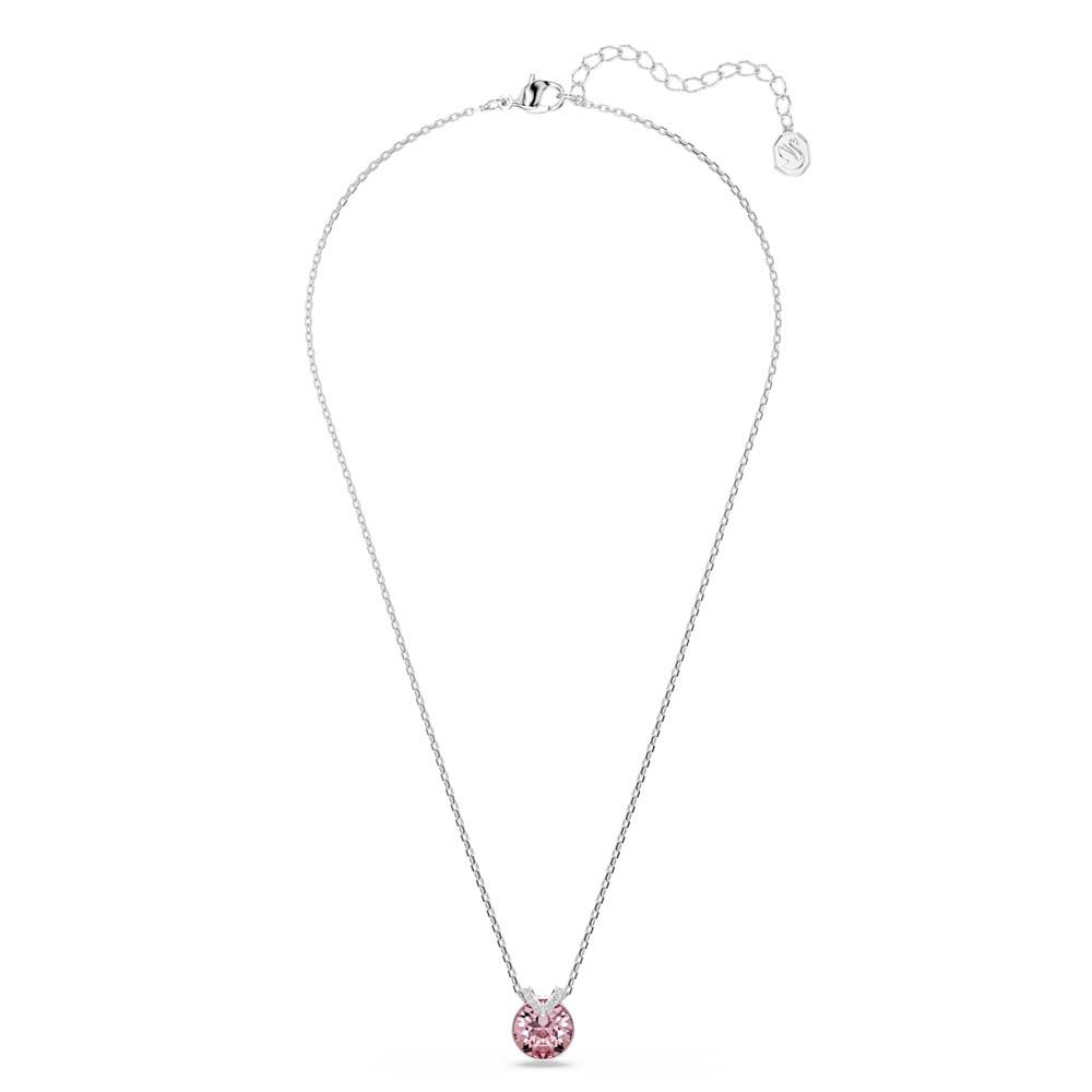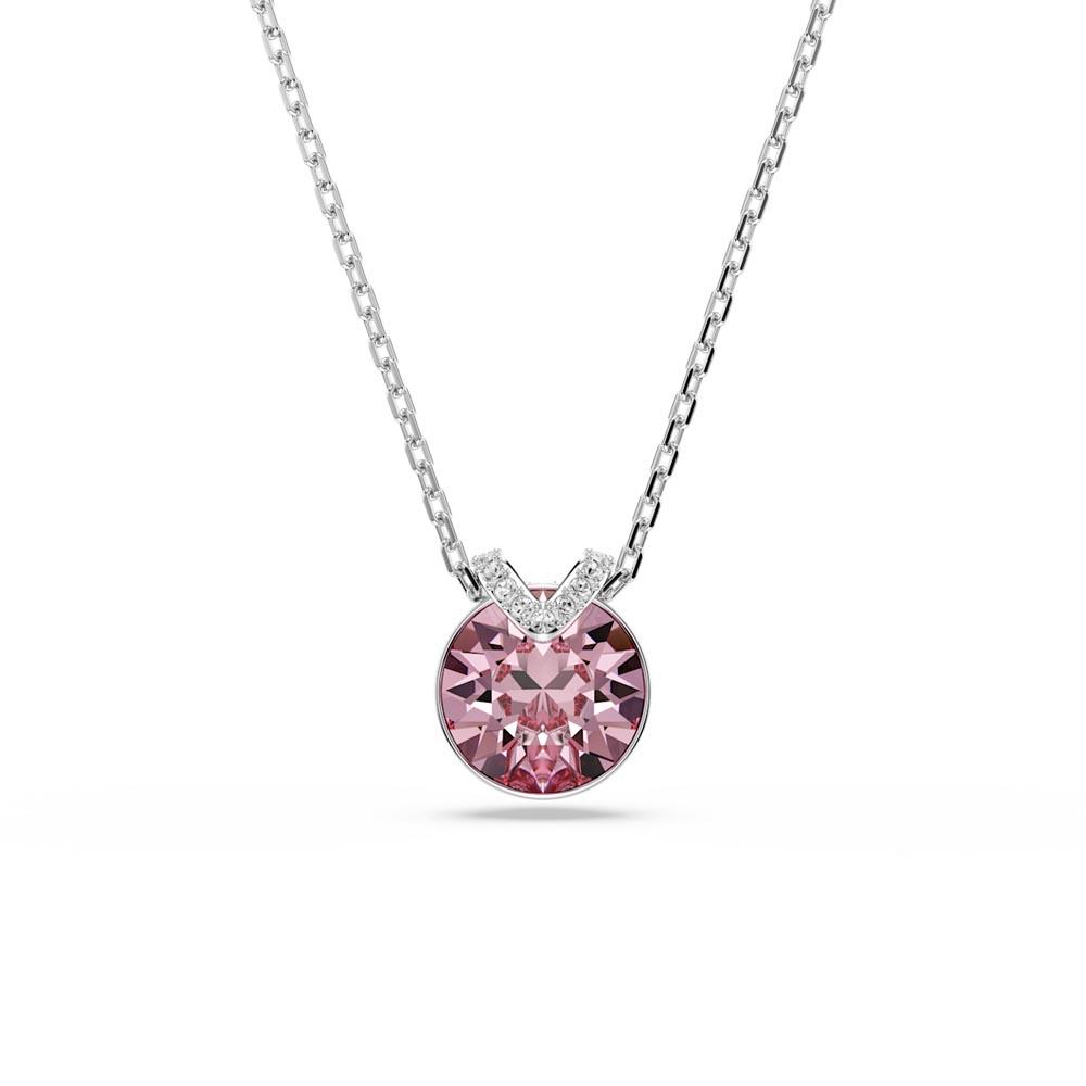 This romantic V-shape pendant has eye-catching appeal thanks to its central pink crystal set in rhodium plating. A flourish of shimmering pavé adds an extra layer of beauty, while the delicate chain exudes pure elegance. Wear it together with the matching earrings for a wondrous combination.