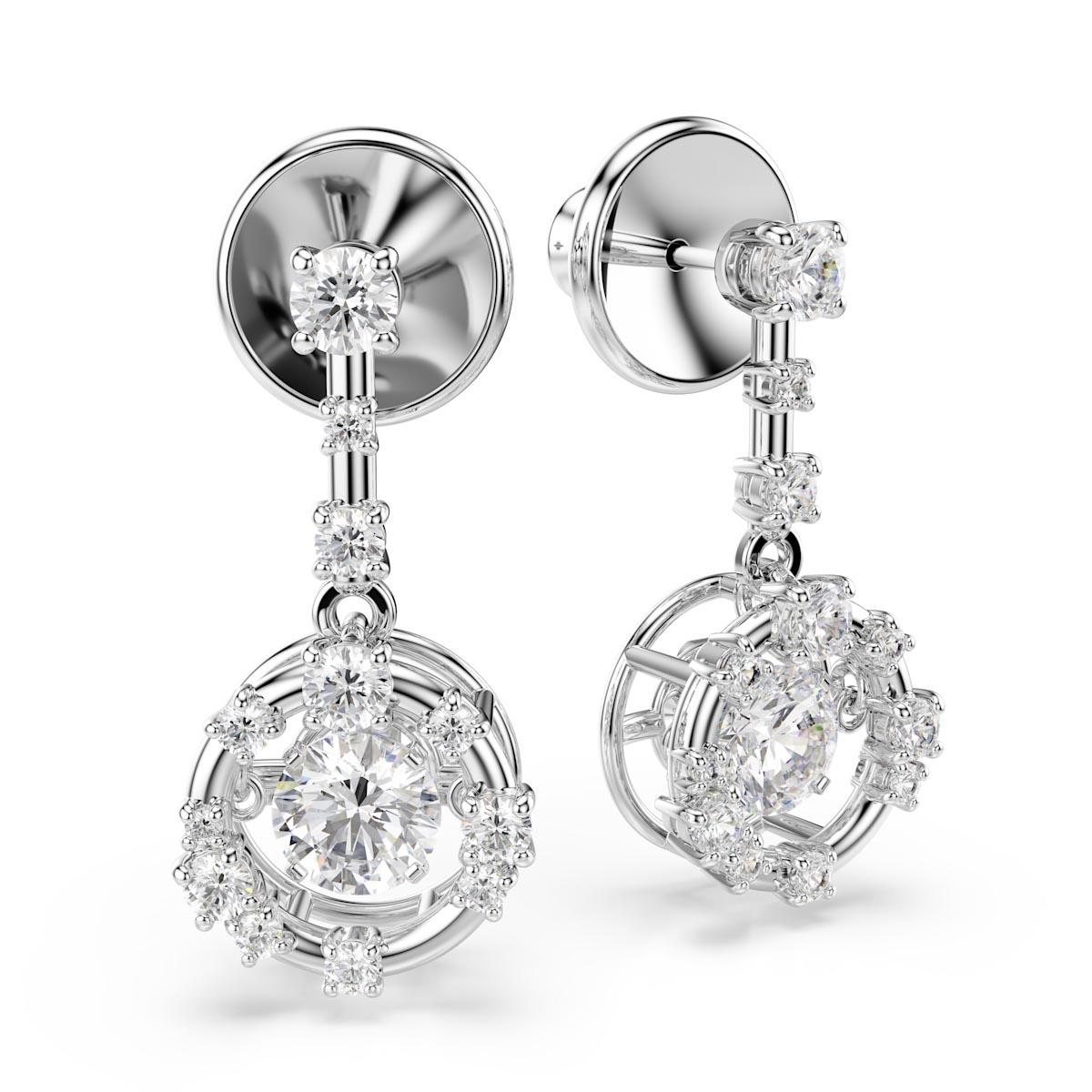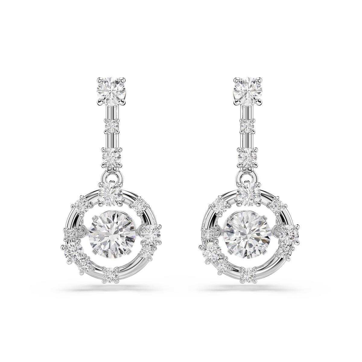 Swarovski – Constella drop earrings, Round cut, Dancing stone, White, Rhodium plated