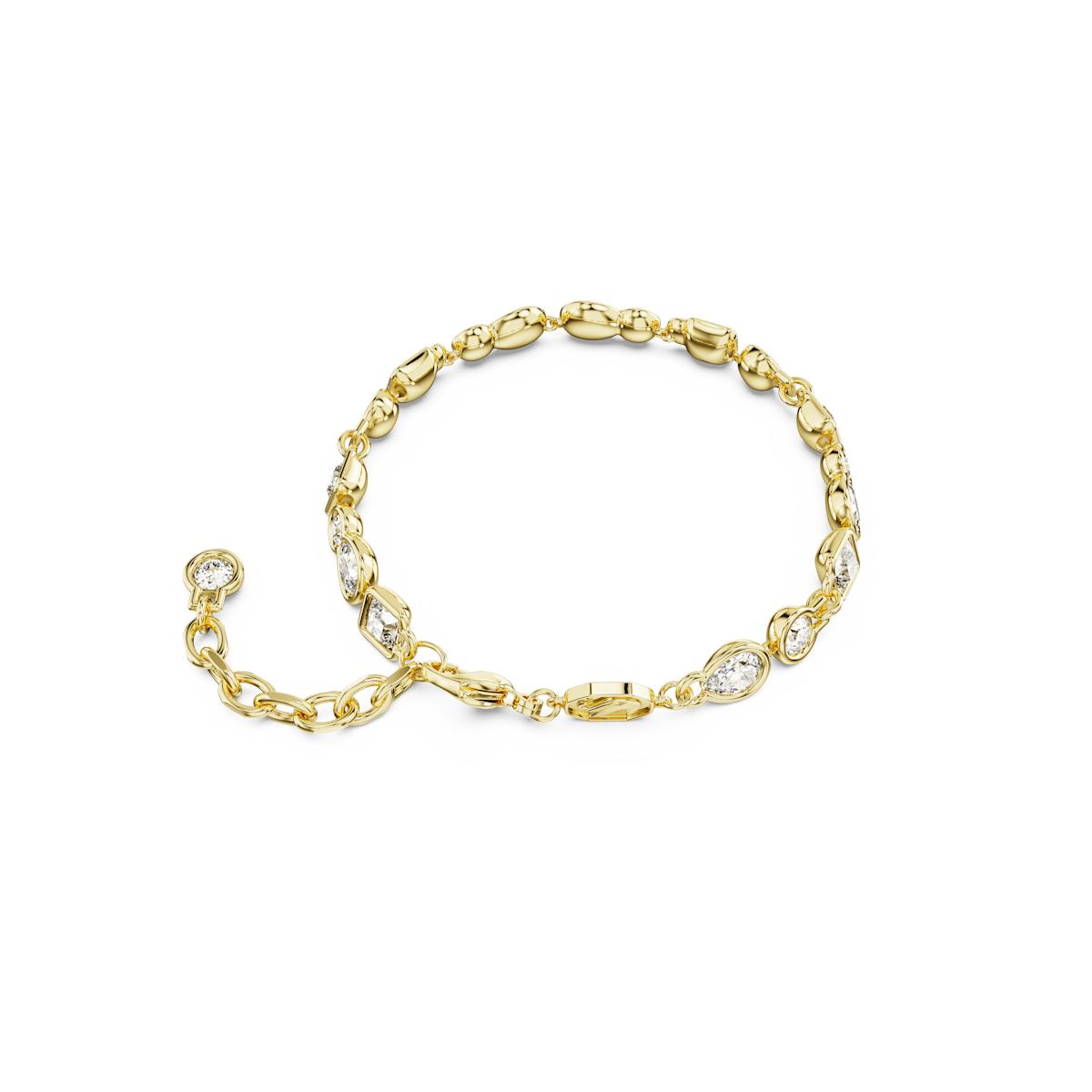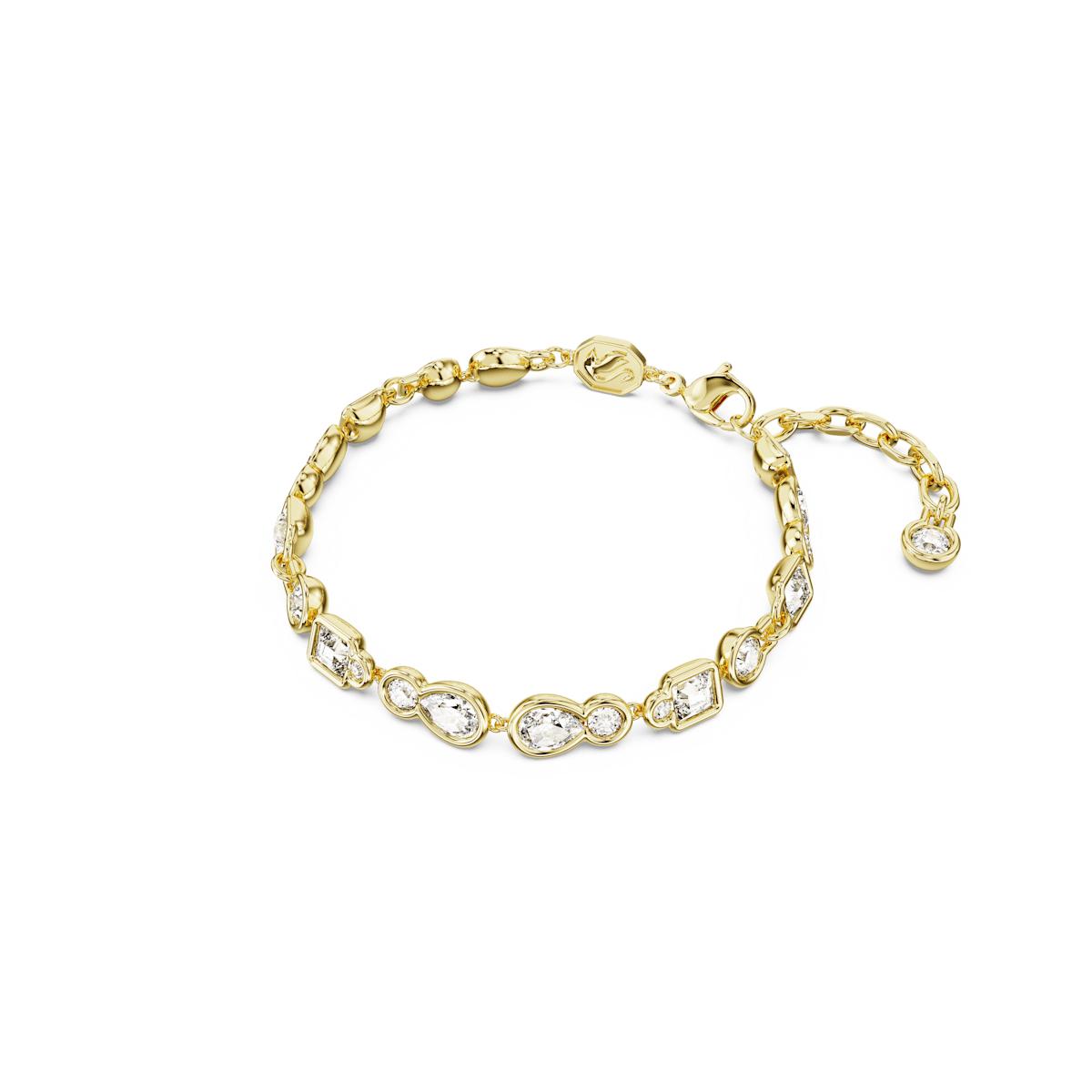 Elevate your look by surrounding your wrist in a multitude of crystals. This radiant Dextera bracelet is gold-tone plated, with each radiant link featuring a unique bezel-set stone. Offering an astonishing array of shapes and sizes, it’s a bracelet that will make your style stand out.