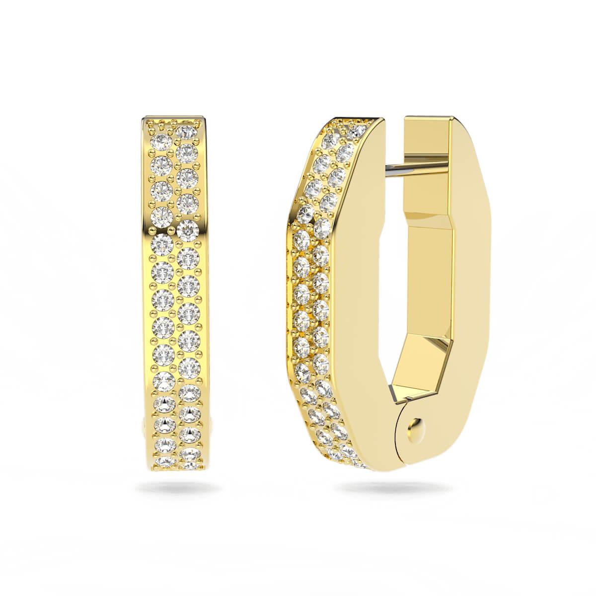 Swarovski – Dextera hoop earrings, Octagon shape, Small, White, Gold-tone plated