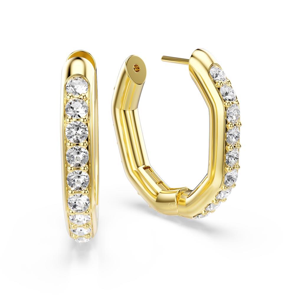 A modern spin on classic hoop earrings, this genderless pair will lend a dynamic touch to any outfit. Its sculptural design celebrates Swarovski’s iconic Pavé technique with glittering foiled crystals set against a sleek gold-tone plated frame. Not just for daytime, wear this statement duo with after-dark looks, too. These earrings are part of the Dextera Family, designed for Collection III.