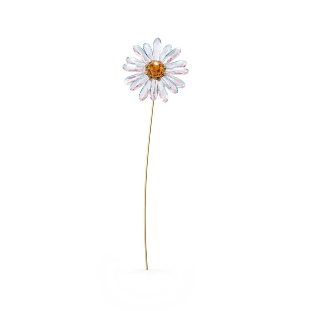 Inspired by the trend for single flower vases, this gorgeous and naturalistic crystal creation depicts a calla lily. This elegant flower is often used in wedding bouquets and symbolizes faith, purity, and innocence. Crafted in clear crystal with an Aurora Borealis effect, with 199 gold-tone crystals lighting up the pistil, the design is fresh and modern. Its pared-back style and the warm tones of the brushed champagne-gold tone plated metal stamen and stem will fit seamlessly into any home. A lovely gift, it can be elegantly presented in either the small or large Garden Tales Decorative Vase. Decoration object. Not a toy. Not suitable for children under 15.