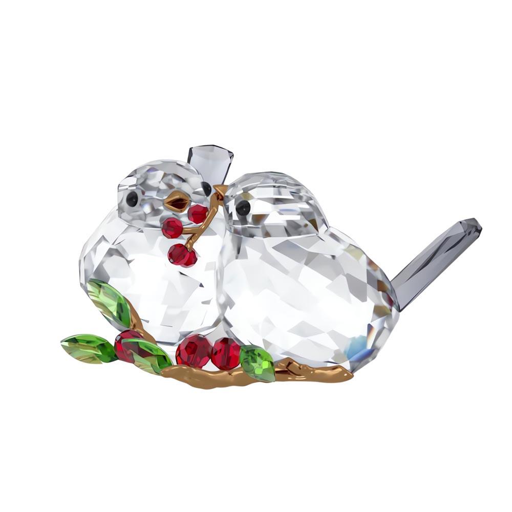 From the fantastical Idyllia garden, this adorable decoration is a celebration of love and nature. Featuring a total of 709 facets and touches of glossy bronze-lacquered metal, the creation reveals two crystallized birds enjoying a meal of bright red berries. The birds can be kept together or separated for your own unique display. Decoration object. Not a toy. Not suitable for children under 15.