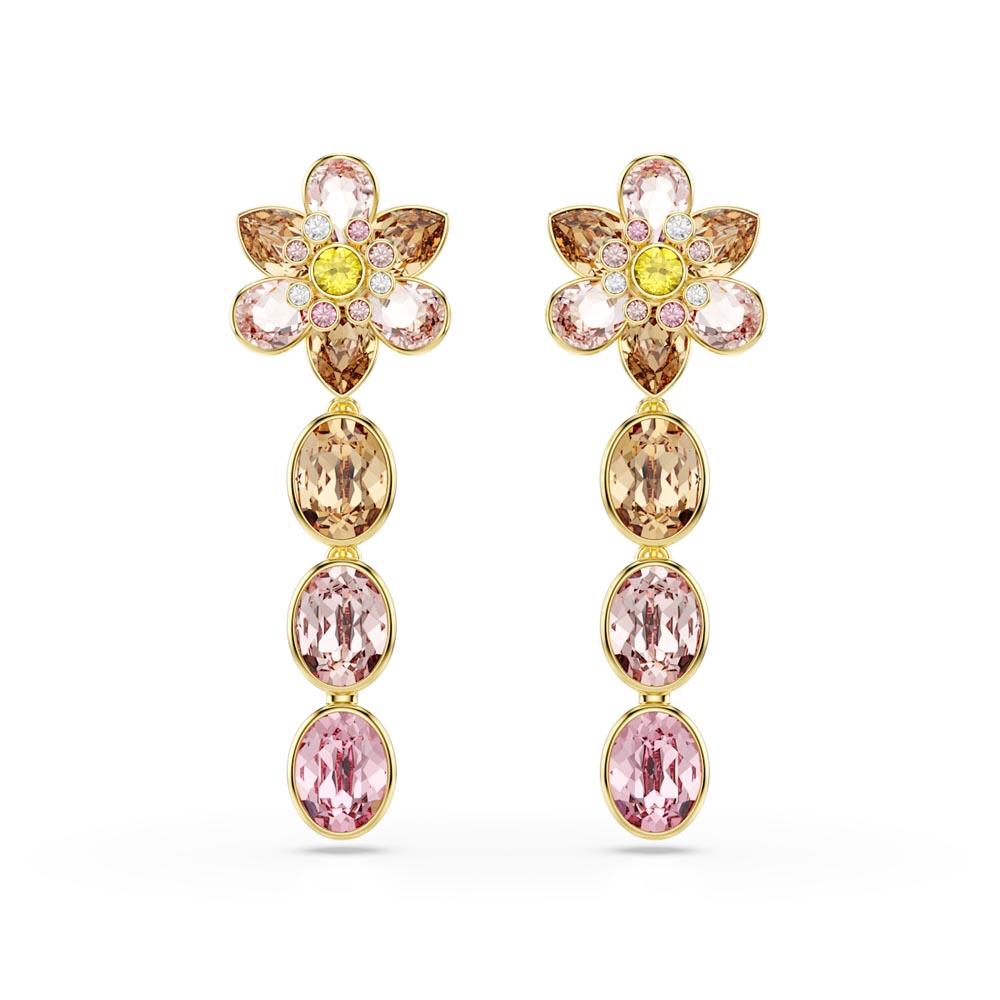 With their refreshing blend of colors, these energizing Idyllia earrings are an exquisite display of Swarovski savoir-faire. Each rhodium-plated piece is attached to a mini hoop adorned with clear crystals, and features a vibrant flower, precisely crafted from blue and clear Swarovski Zirconia. A fixed Swarovski Zirconia at the center catches the light from every angle. Wear these earrings to instantly uplift your style.