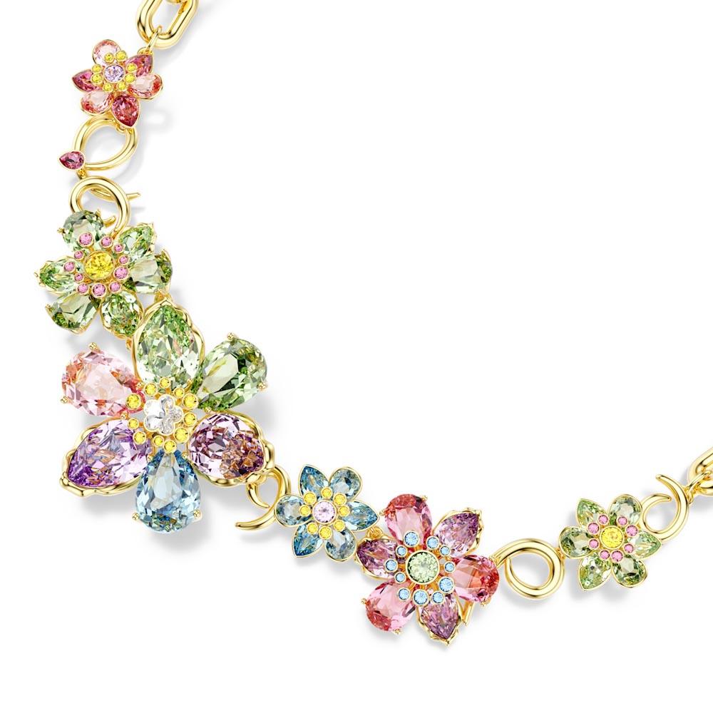 This captivating Idyllia necklace will elevate any outfit with radiant color and joy. The all-round design features a gold-tone plated chain with a vivid array of flowers, each created in crystals of varying shapes and shades. In every petal, the Swarovski savoir-faire is clear to see, resulting in a piece of jewelry that is both playful and luxurious. This necklace would make a stunning gift for a loved on a very special occasion.