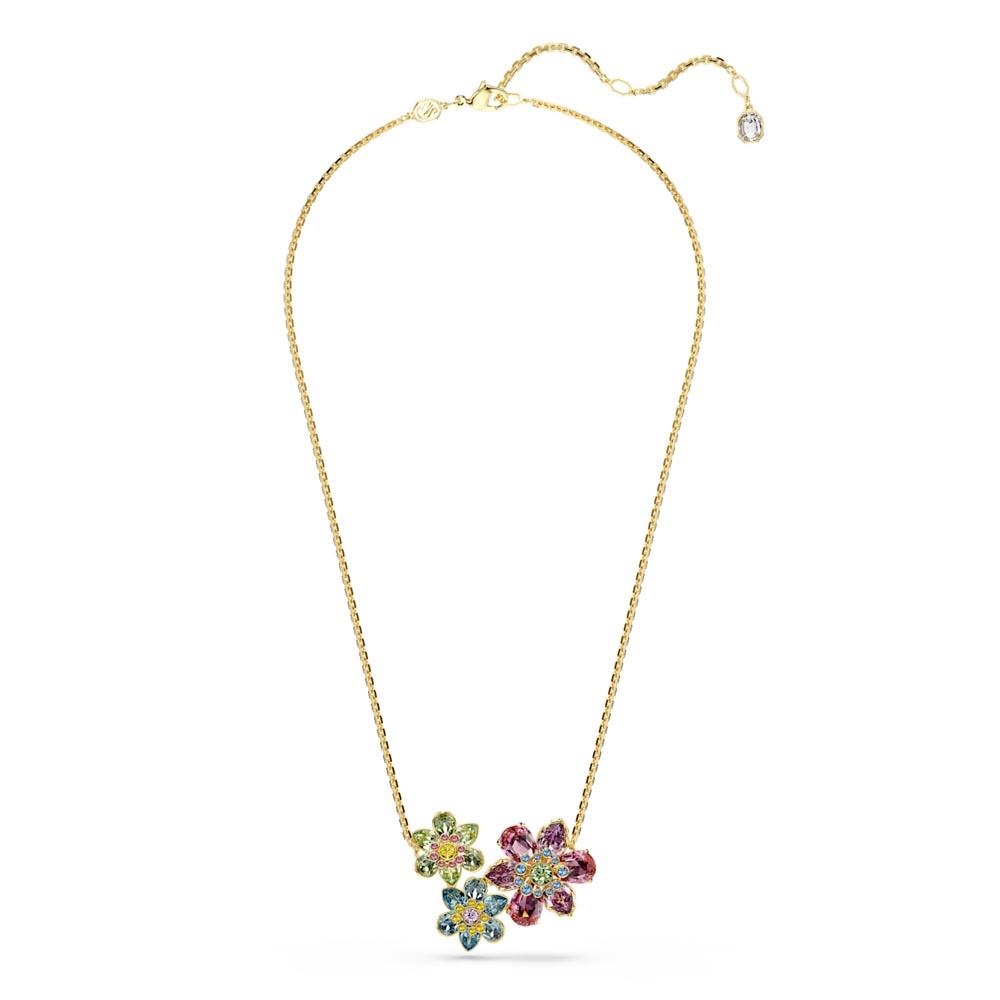 Swarovski – Idyllia pendant, Mixed cuts, Flower, Multicolored, Gold-tone plated