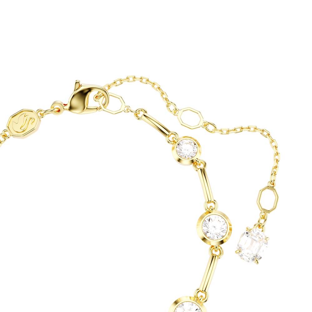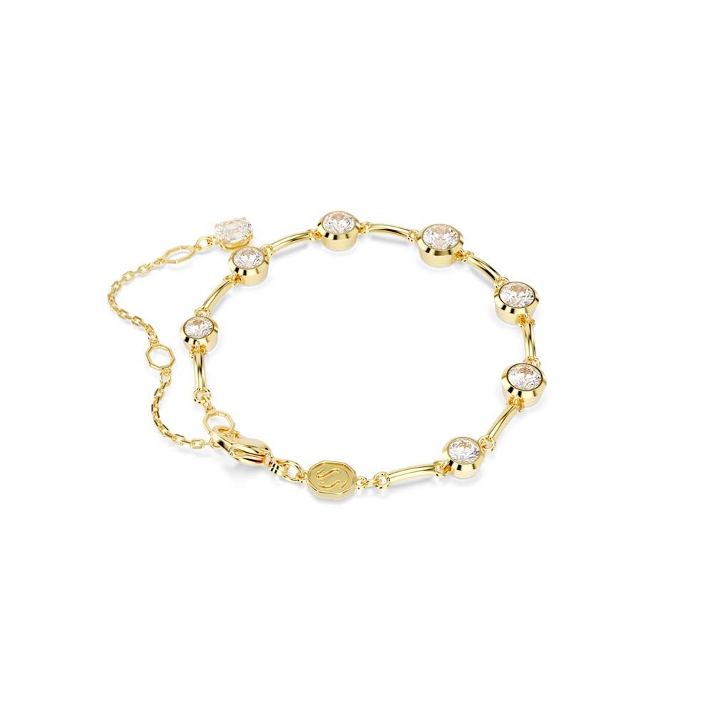Simplicity reigns supreme in this elegant bracelet from the Imber family. The gold-tone plated design is embellished with seven Swarovski Zirconia in round cuts, each placed in a modern bezel setting. For an adjustable fit, the lobster closure is accompanied by three size positions and a single Swarovski Zirconia at the end of the extender. Wear this bracelet with a matching Imber necklace to maximize the look of refinement.