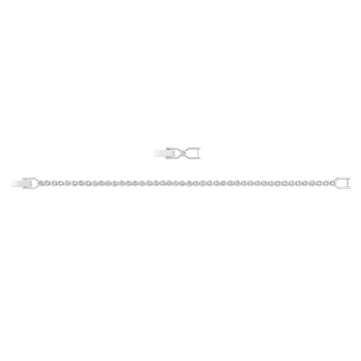 A classic Imber Emily Tennis bracelet with a gleam that speaks volumes! This delicate strand of bezel-set clear crystals on a rhodium-plated Imber Emily Tennis bracelet is very dainty and minimalistic in its look. However, it makes a bold statement of sheer elegance. It has a secure foldover clasp closure and comes with an extender.