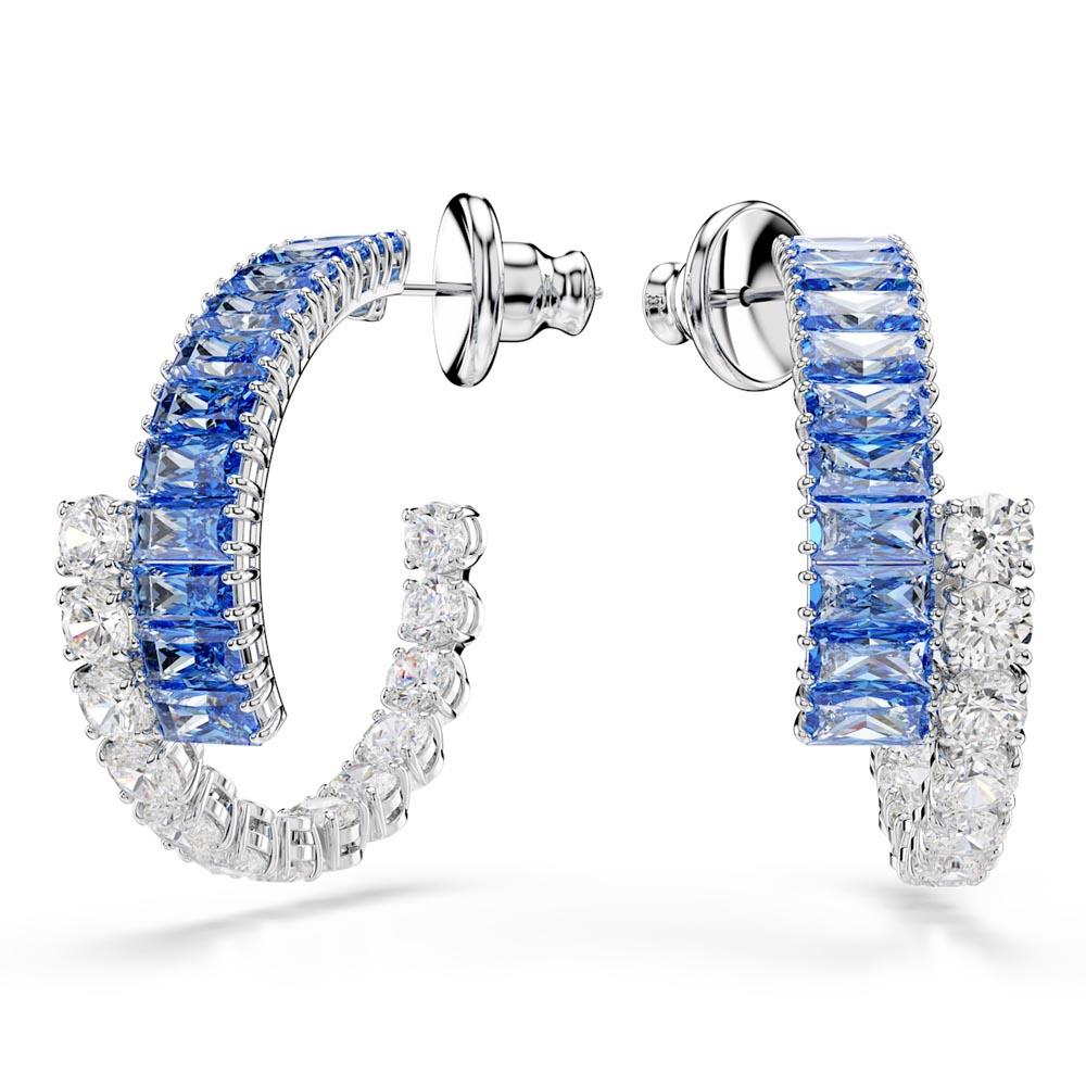Color your style with the vibrant design of these Matrix earrings. Each piece is crafted for a sleek appearance and features clear and blue Swarovski Zirconia in a vivid mix of round and baguette cuts. These earrings can be worn with matching Matrix pieces to heighten the color and light in whatever you wear.