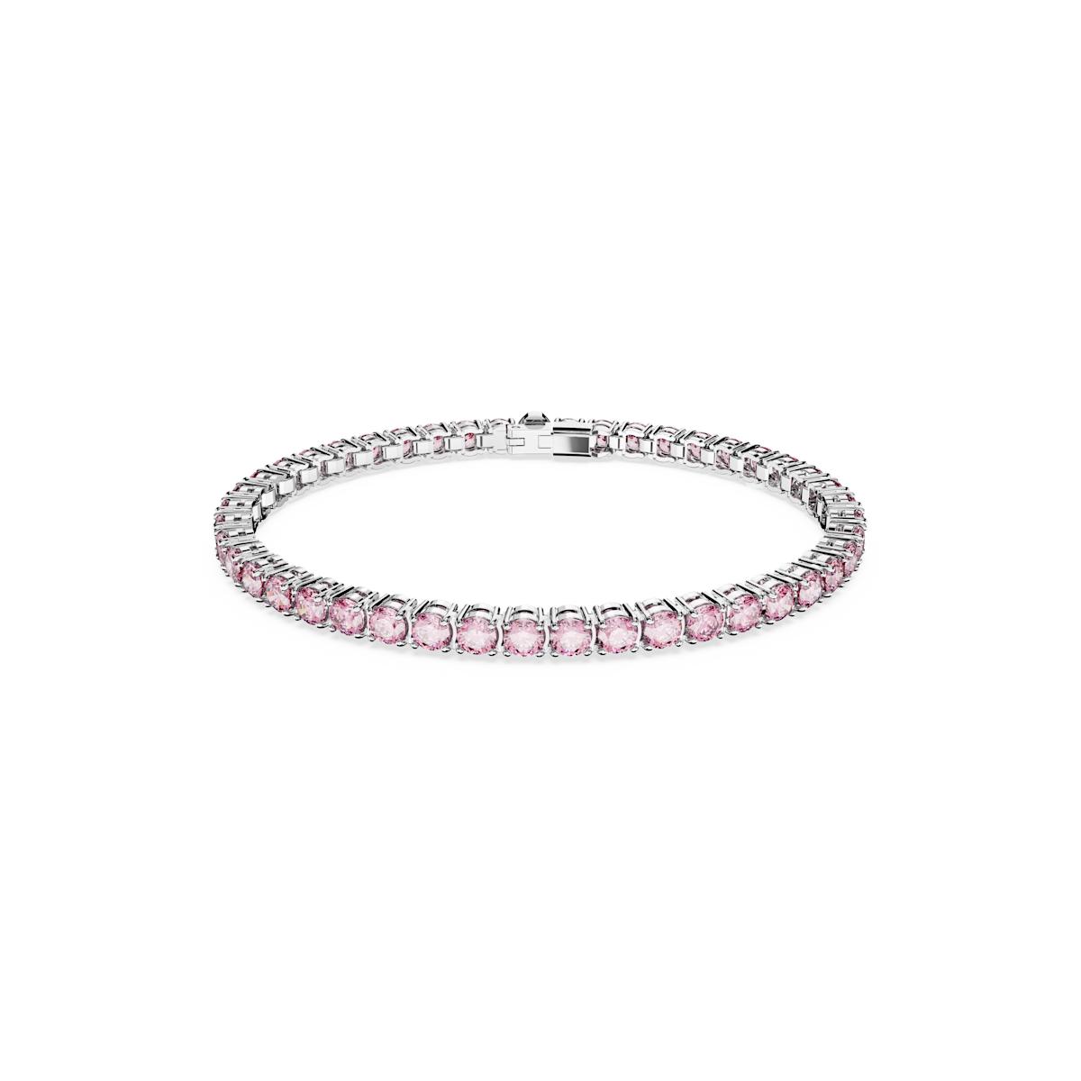 Swarovski – Matrix Tennis bracelet, Round cut, Pink, Rhodium plated