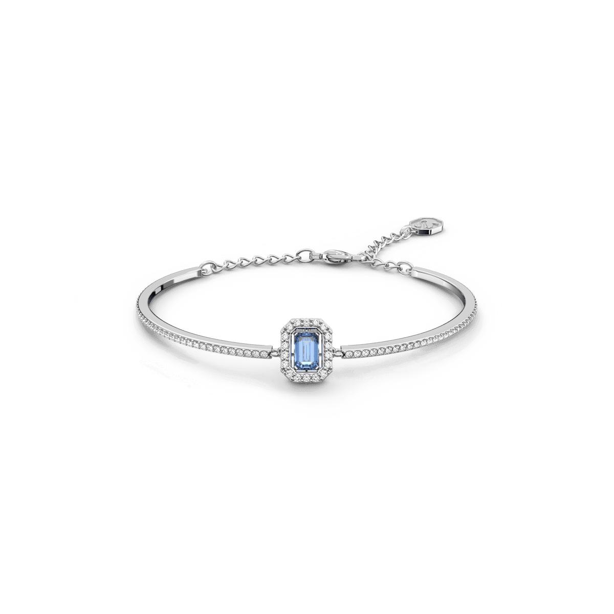 This elegant bangle captures Daniel Swarovski’s desire to make fine jewelry accessible to every woman. Here, a vibrant blue octagon cut stone is framed by delicate crystals and a sleek rhodium-plated band complete with a lobster clasp fastening. It’s the perfect choice for elevating everyday denim or sleek office tailoring – anything goes. This bangle is part of the Millenia family, designed by Creative Director Giovanna Engelbert for Collection II.