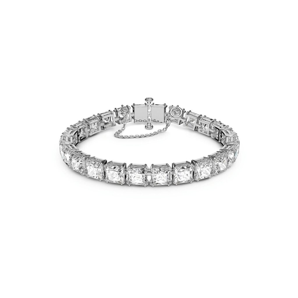 Adorn yourself in exquisite trilliant-cut crystals, courtesy of this striking bracelet from the Millenia family. Designed with refined prong settings and a concealed closure, this elegant piece is finished with sleek rhodium plating. Wear it with the matching necklace to work wonders, day or night.