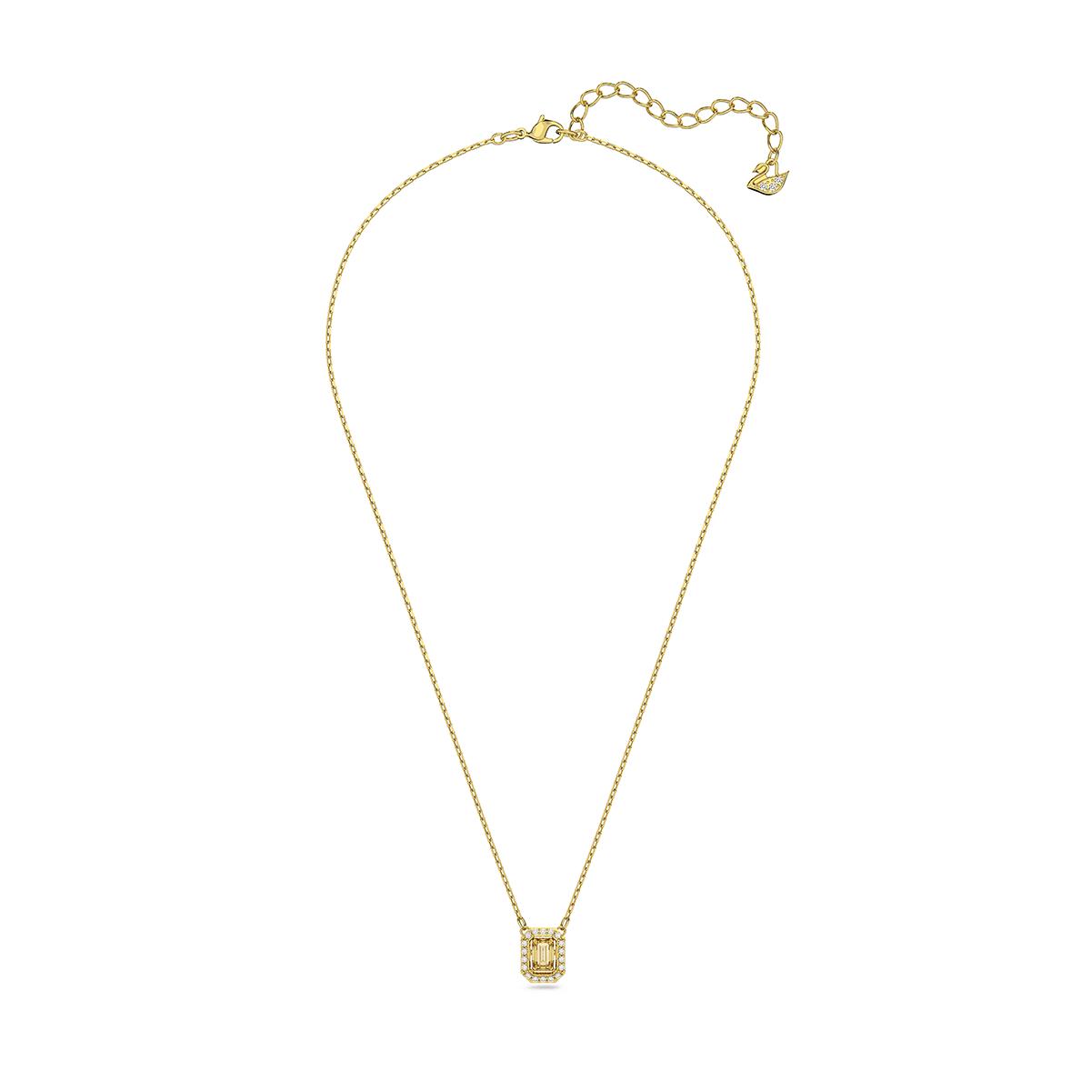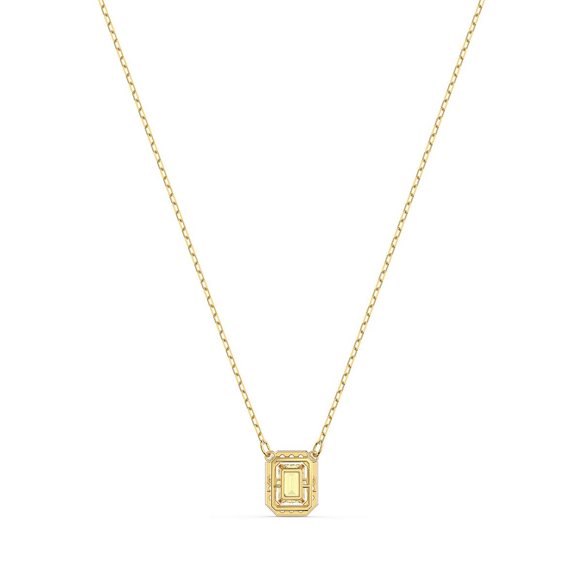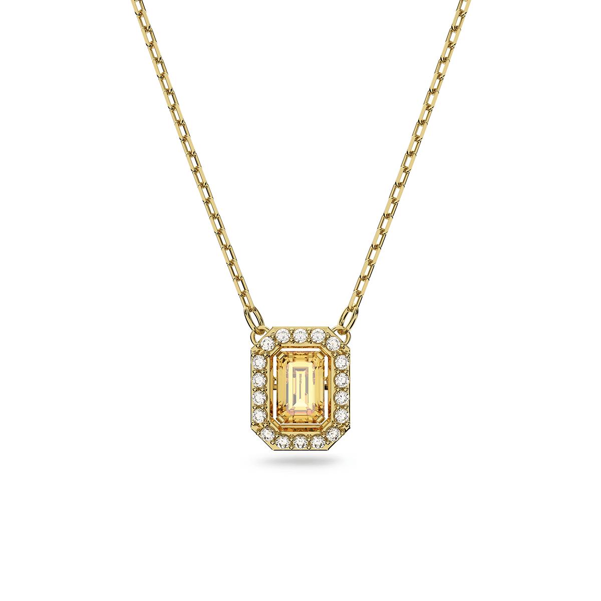 Symbolizing the rebirth of the octagon shape, this delicate pendant necklace will be treasured and worn forever. A joyful canary yellow step cut stone provides the centerpiece, which moves as you wear it. Surrounded by smaller brilliant cut stones and suspended on a gold-tone plated linked chain, make this unique and personal piece your essential everyday adornment. This necklace is part of the Millenia family, designed by Creative Director Giovanna Engelbert for Collection I.