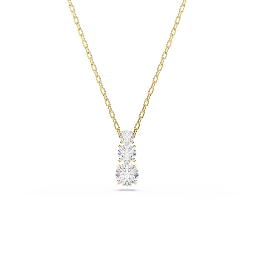 Inspired by the concept of eternal love, this romantic pendant is timelessly elegant. The trio of clear Swarovski Zirconia are majestically suspended from a gold-tone plated chain, creating a piece of jewelry that is full of emotion. It’s the perfect gift for a loved one, and can be worn with a matching pair of pierced earrings or a ring.