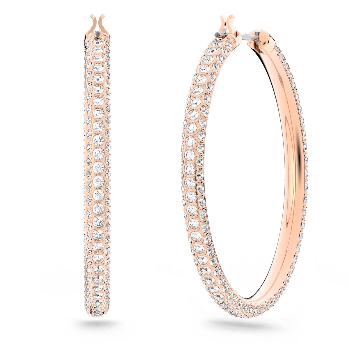 Swarovski – Stone hoop earrings, Pavé, Large, White, Rose gold-tone plated