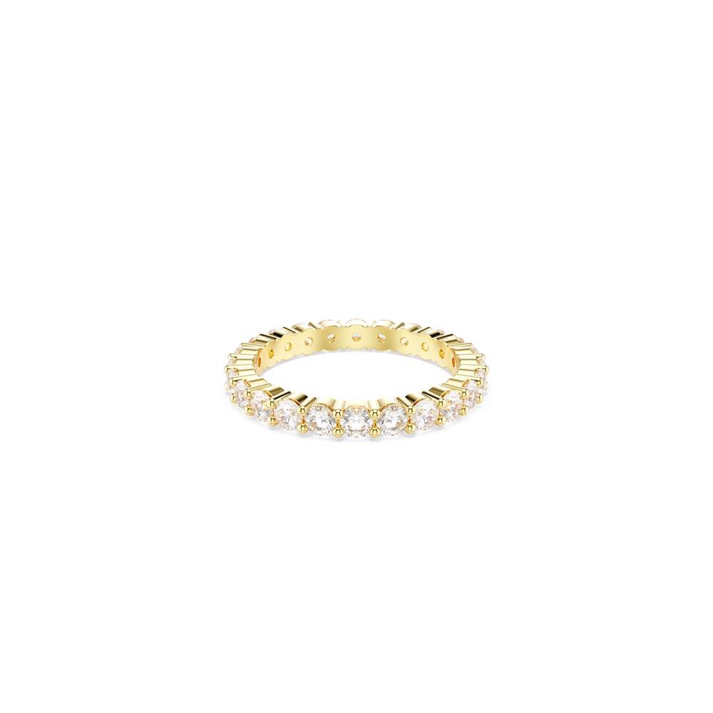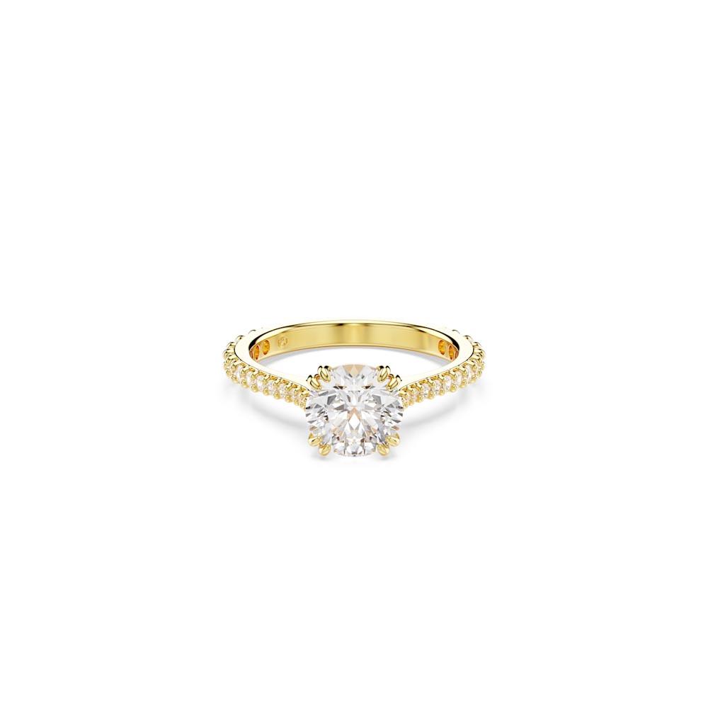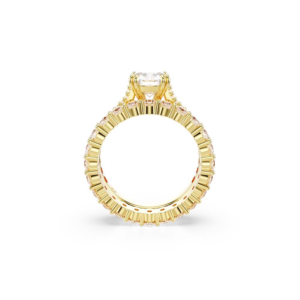 Reflecting the beauty of the cosmos, this spectacular jewelry inhabits its own light-filled universe. The gold-tone plated design combines a band ring adorned in pavé with a solitaire ring, also featuring pavé, with a large Swarovski Zirconia at the center. A radiant gift that beautifully captures Swarovski’s signature savoir-faire.