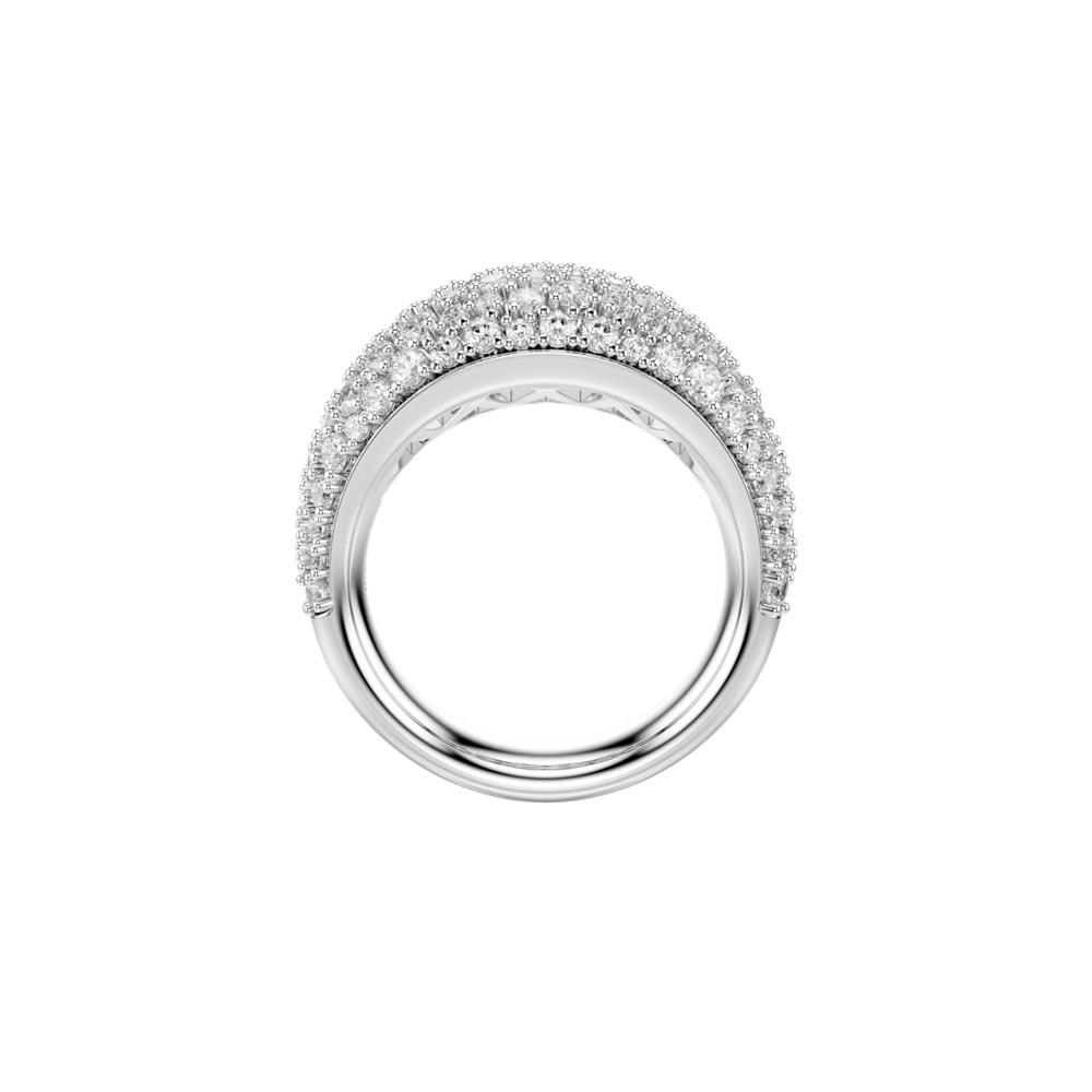 Designed for maximum impact, this domed ring is crafted in rhodium plating and features a stunning decoration of clear Swarovski Zirconia, set in place using the chatonnage technique. Ideal for moments when elegance and wonder is called for.