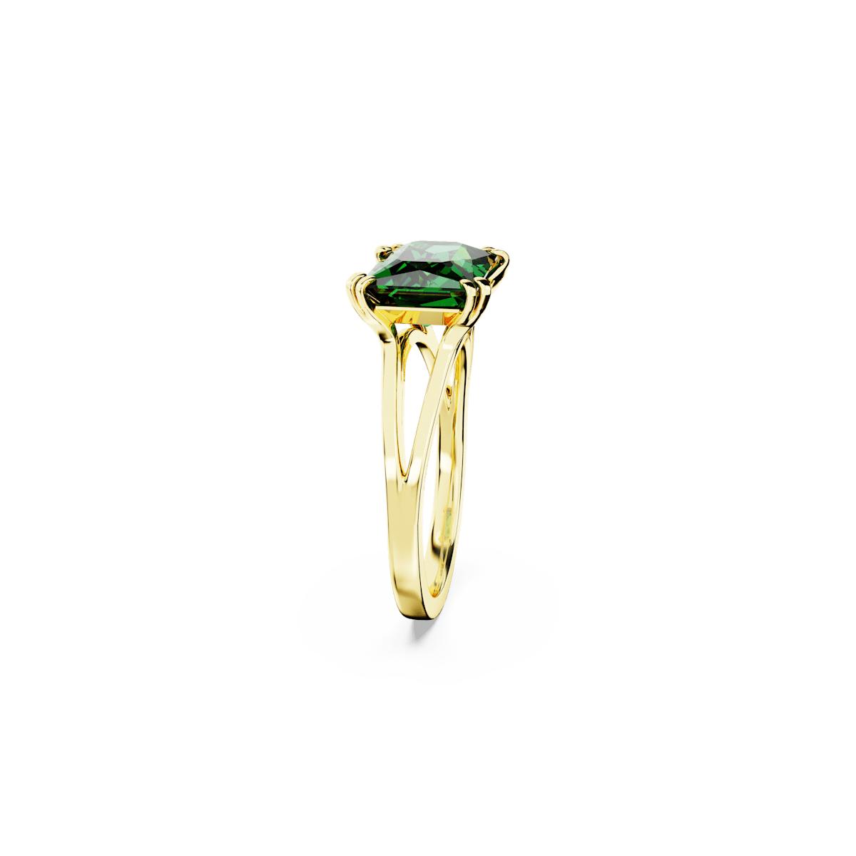 This Stilla ring has a modern twist thanks to a verdant flourish of green. Crafted with gold-tone plating, the refined band is adorned with a rectangular Swarovski Zirconia in an energizing emerald hue, held in place by an elegant double prong setting. A contemporary choice that exudes natural beauty.