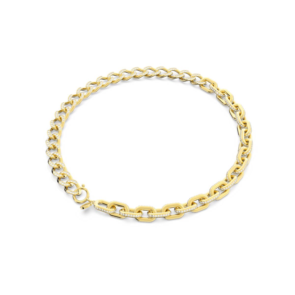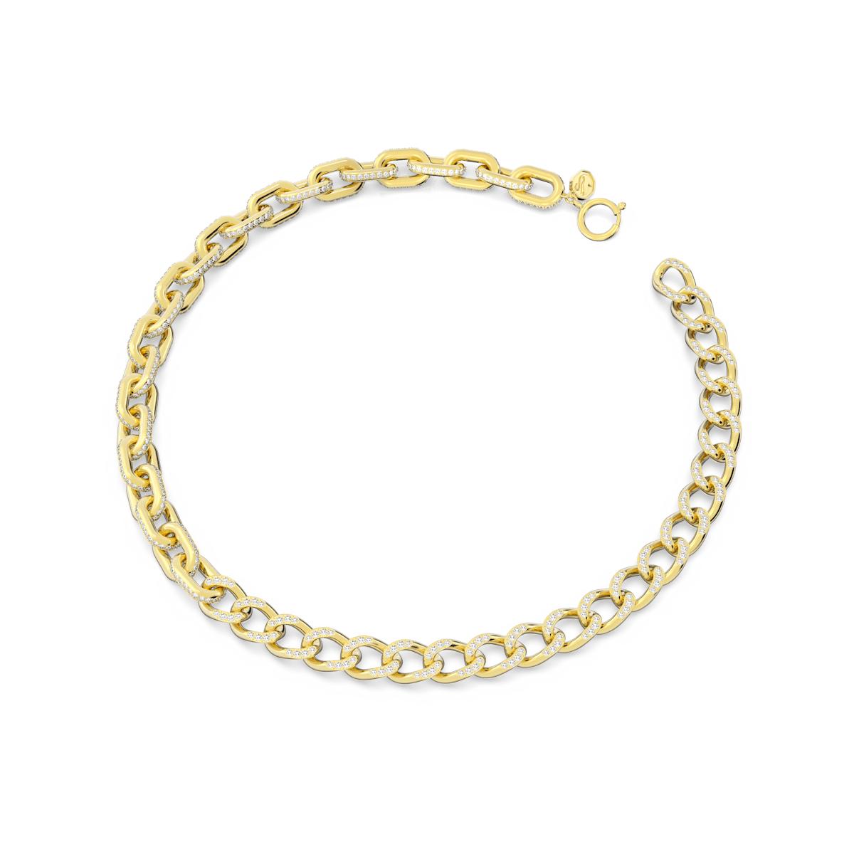 This modern chain necklace from the Dextera family delivers the signature craftsmanship of our master cutting and our iconic pavé technique. The play of light is emphatic at every angle, thanks to the contemporary contrast of shimmering crystals on a bold gold-tone plated setting. Pair it with a matching bracelet for an industrial-chic look.