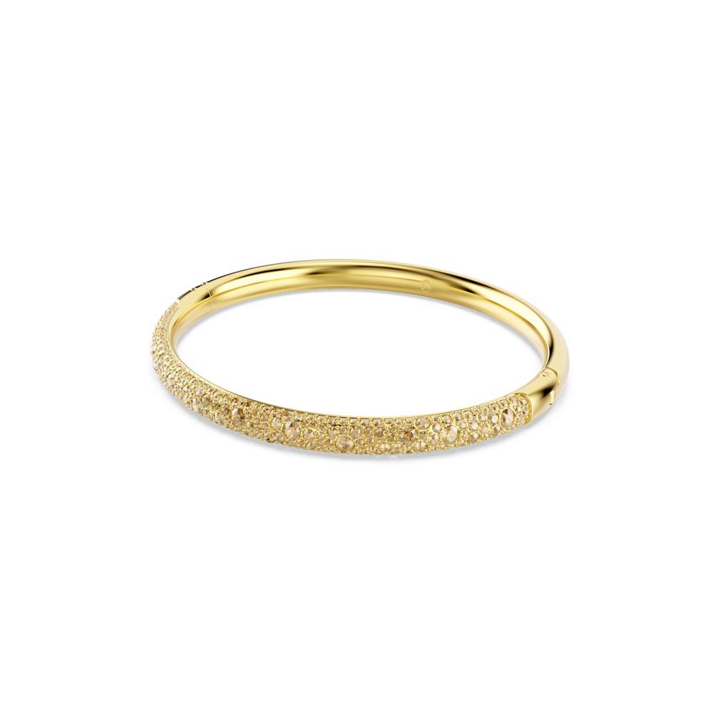 This dazzling Sublima bangle will infuse your style with stardust. The gold-tone plated band wraps gracefully around the wrist and features a pavé of gold-tone round crystals in different sizes across the top section. A luxurious touch of refinement for your everyday looks.