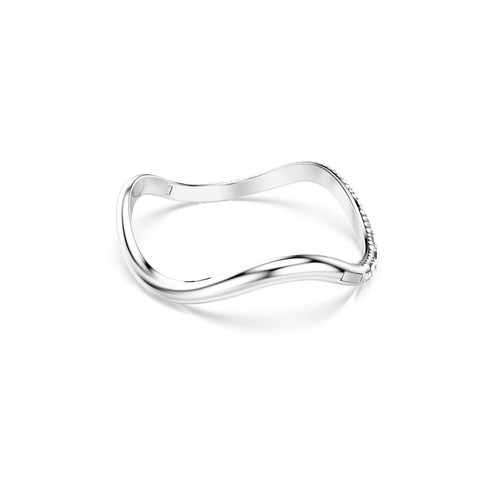 Echoing the undulating ocean waves, this Sublima bangle embodies dynamic elegance. Its flowing shape is adorned with a pavé of clear crystals set in a ruthenium plated base, with rhodium plating behind. The Meteora pattern of differently sized crystals provides a unique and dazzling effect. A fitting tribute to the marine landscape that will infuse any look with tranquility.