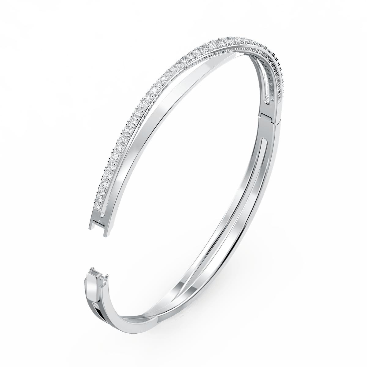 This beautiful bangle by Swarovski exhibits timeless, understated elegance in a modern interpretation of the spiral trend. A brilliant line of sparkling white stones follows the gently curving lines of the bangle, adding glittering radiance to the design. On-trend and refined, this bangle complements your everyday looks with a brilliant touch.