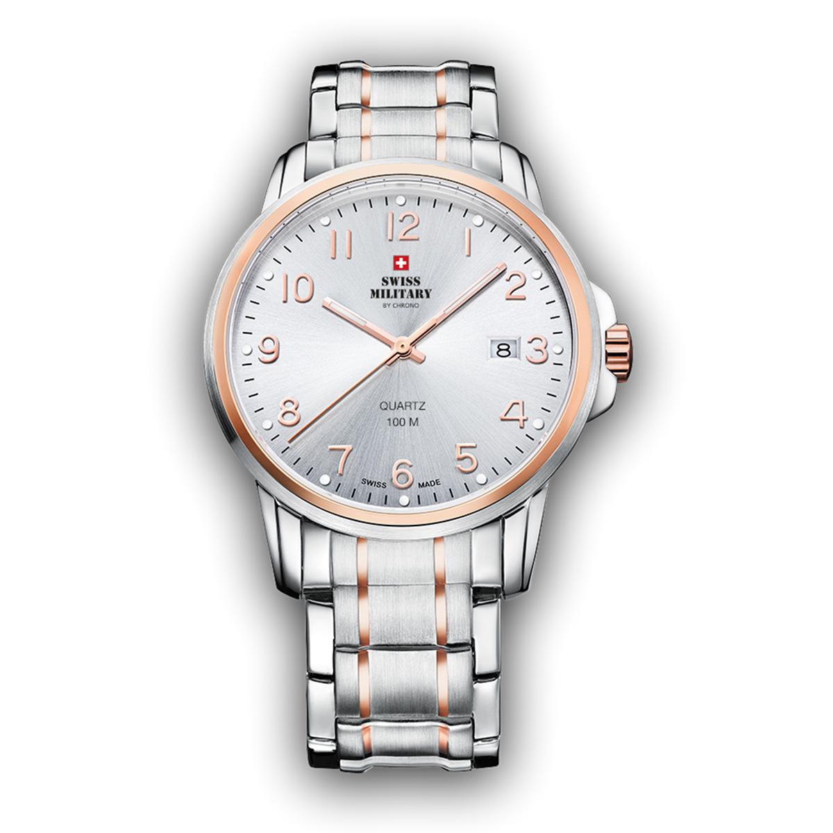 Tøff herreklokke fra Swiss Military med stållenke og hvit urskive.