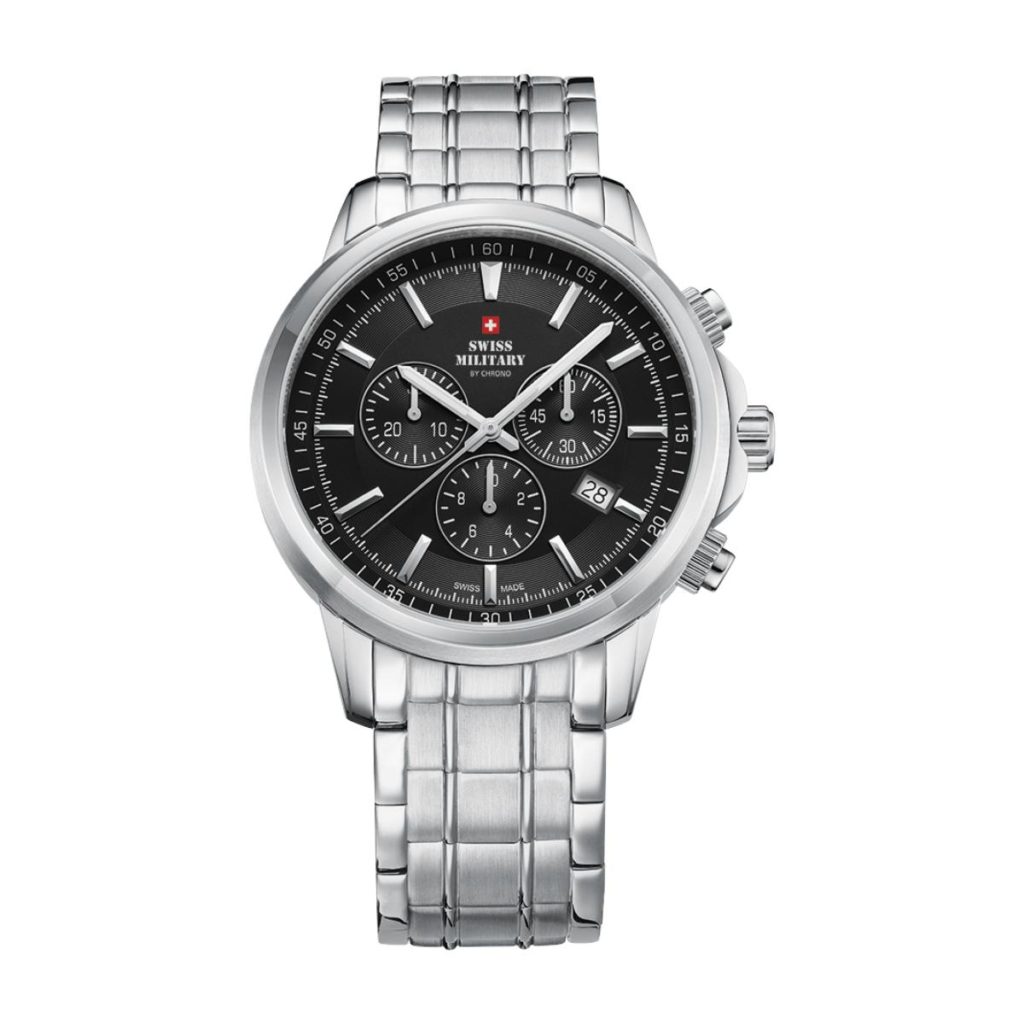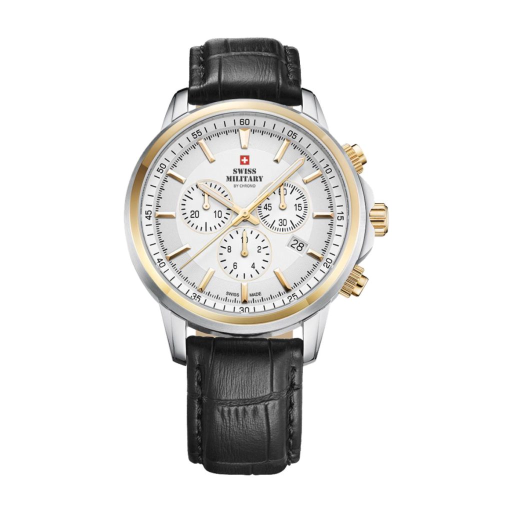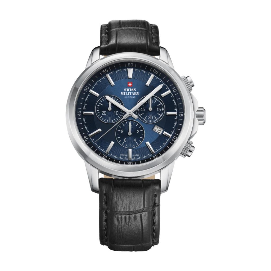 Stilig herreklokke fra Swiss Military med svart skinnreim og urskive.