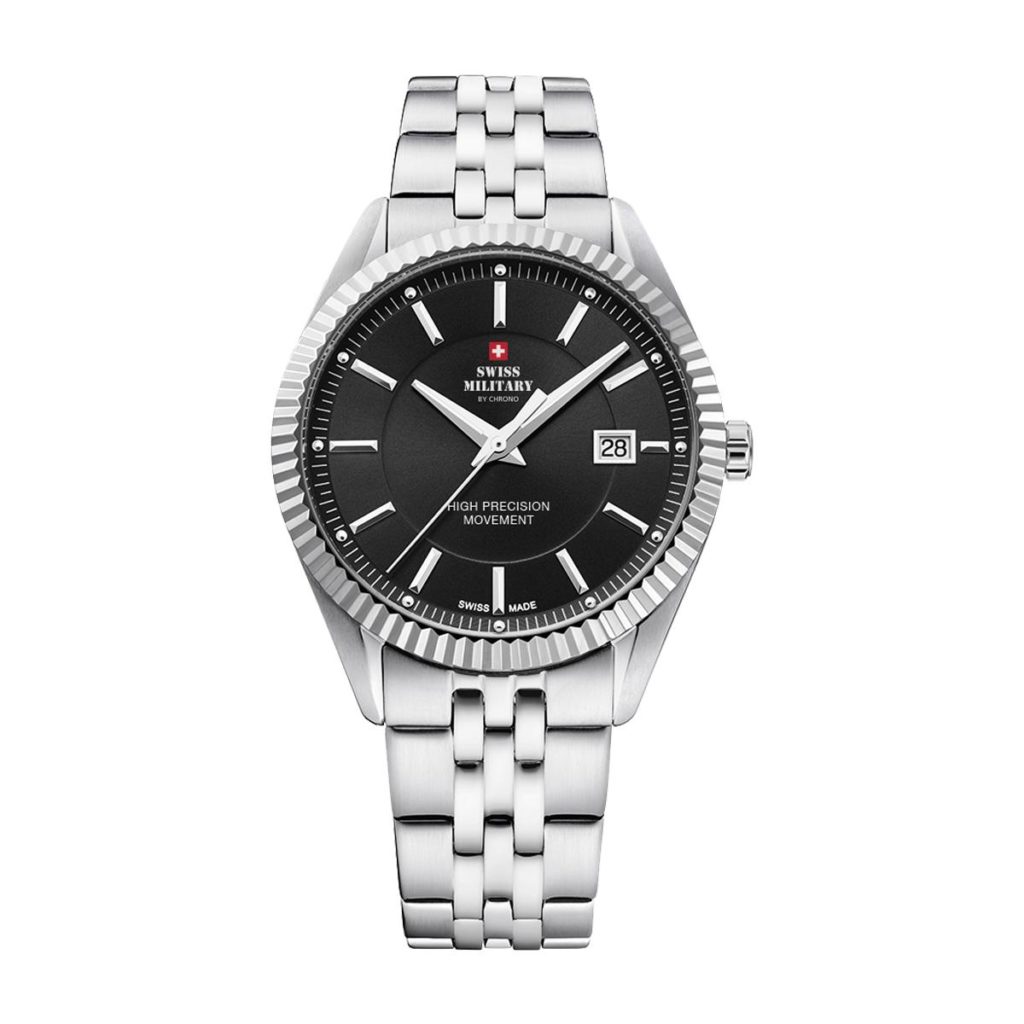 Tøff klokke fra Swiss Military med svart skinnreim og svart urskive.