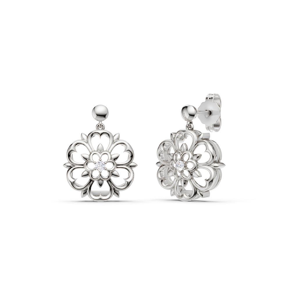 Hjem Ørepynt Gull Diamant Trondhjemsrose ørepynt hvittgull 0,04ct TWSI