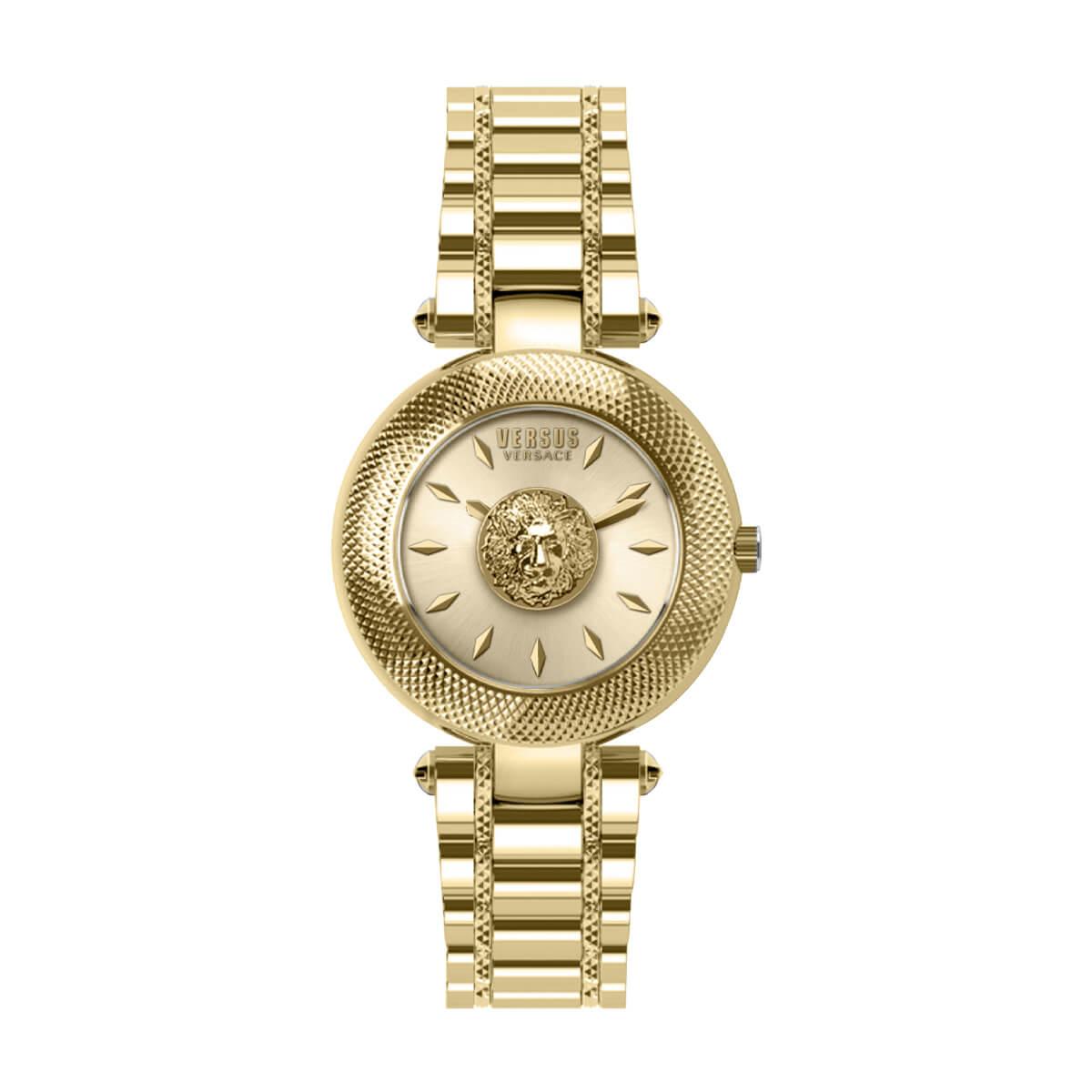 Dameklokke fra Versus Versace med gullfarget stållenke og urskive.