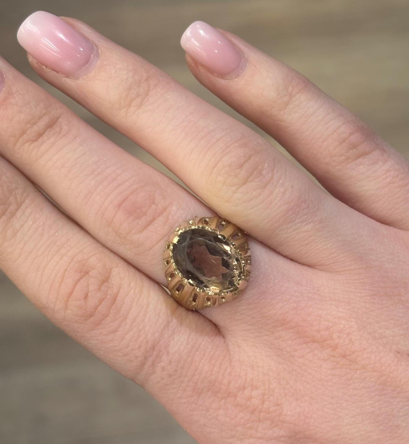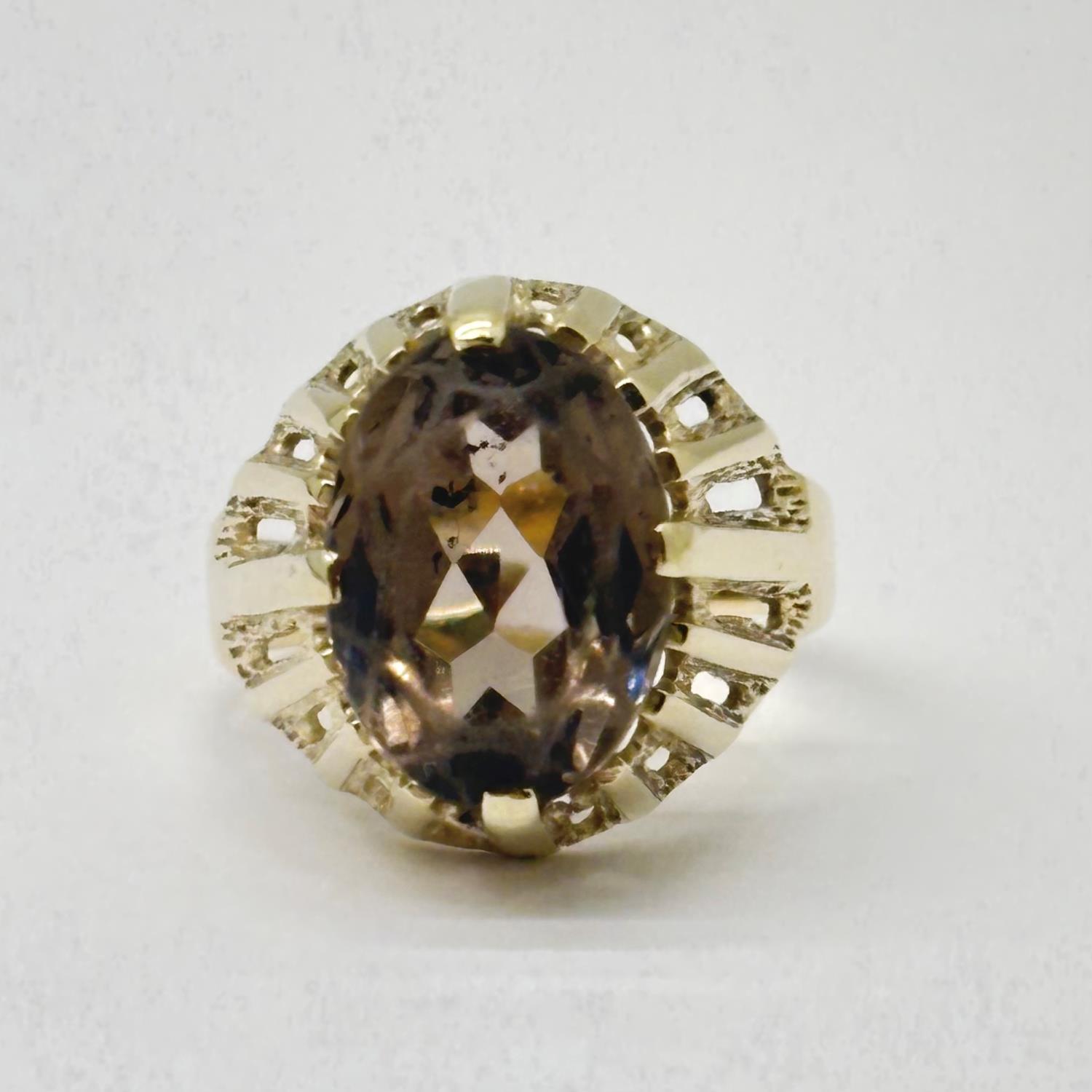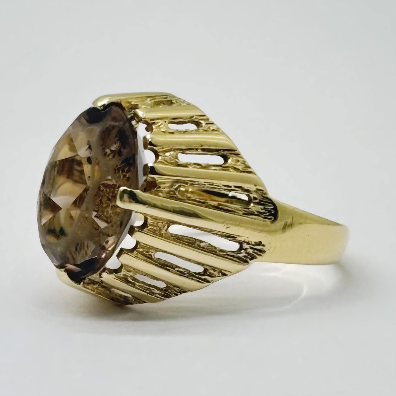 VINTAGE – Ring i Gultgull i 14K (585) Brun sten Str: 55